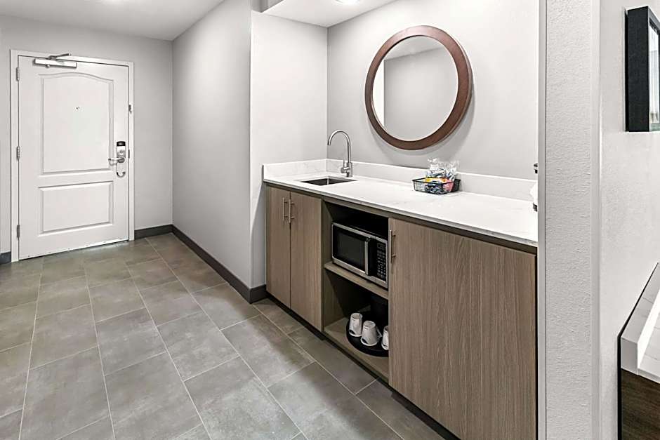 This spacious suite features a microwave, a mini-fridge and coffee-making facilities. A flat-screen cable TV and free WiFi are also provided.